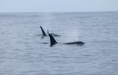 We closely watch the horizon with binoculars, and suddenly one of the guides spots something in the distance, and we turn. I try to get a glimpse of it to see what it is, but it takes some time until they appear at the surface again.